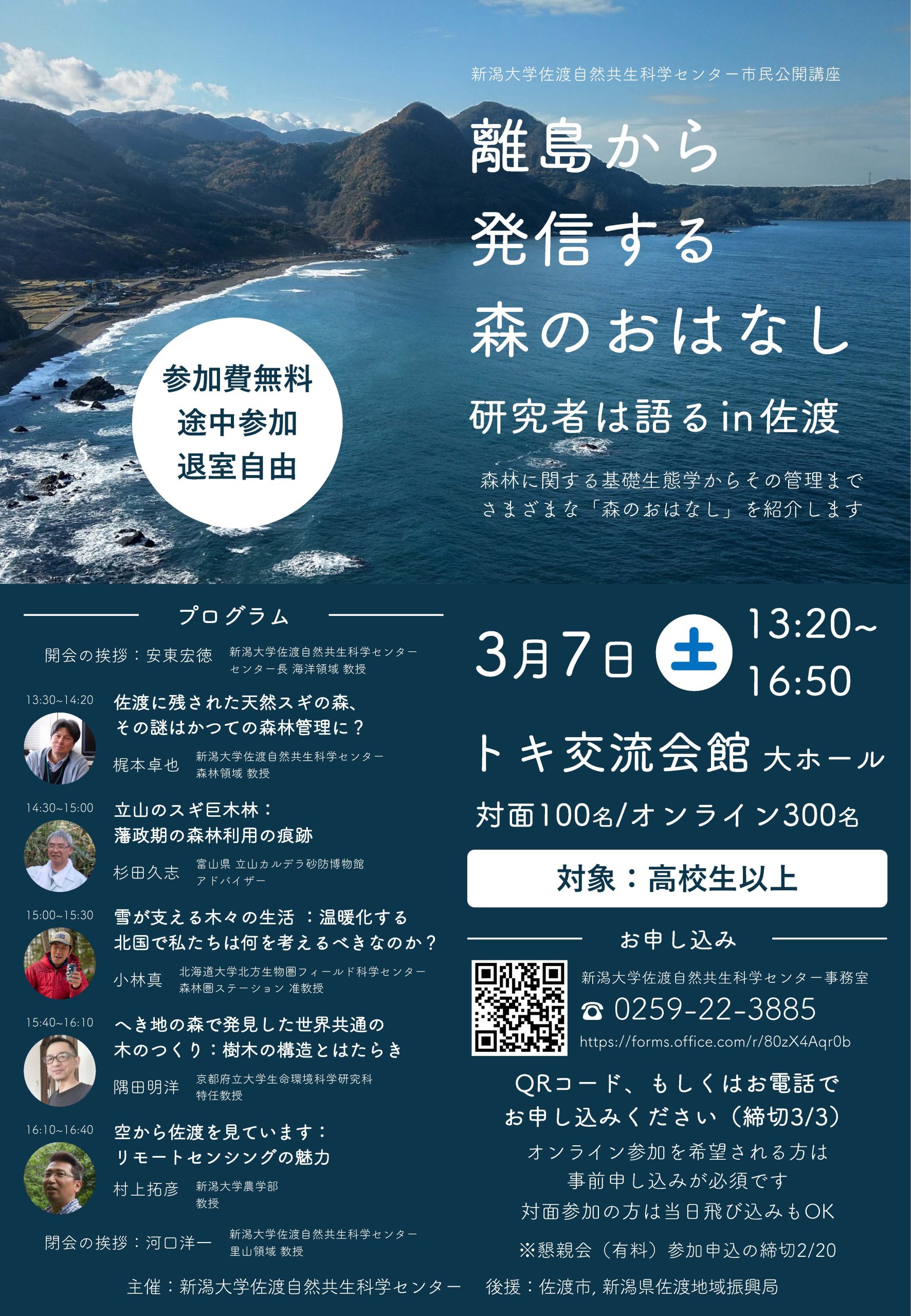 2026年3月7日(土)に、市民公開講座「離島から発信する森のおはなし 〜研究者は語る in 佐渡〜」を開催します。